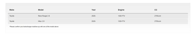 Designed specifically for 2020 and newer Toyota Revo Rouge and Hilux 2.8 models equipped with the 1GD-FTV engine, this turbocharger ensures reliable performance, consistent boost delivery, and exceptional value as a quality alternative to OEM parts.