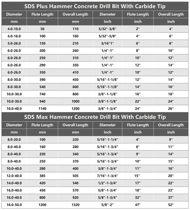 SDS Max Plus Shank Tungsten Carbide Tip Hammer Concrete Drill Bits for Concrete Granite Masonry Brick Drilling